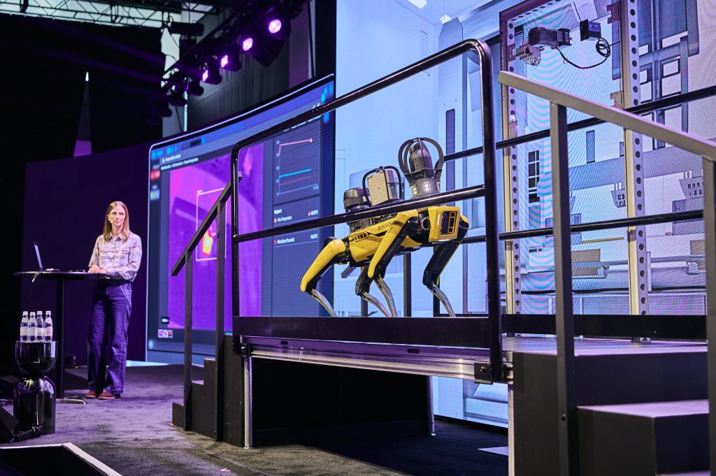 To był moment, który osobiście zrobił na mnie największe wrażenie. Prezentacja z udziałem robota Spot pokazała bardzo namacalnie, jak daleko zaszliśmy od świata, w którym o robotyce przemysłowej mówimy tylko na slajdach. Spot, czteronożna platforma zdolna samodzielnie poruszać się po zakładach, został pokazany jako przedłużenie systemu IFS.ai.