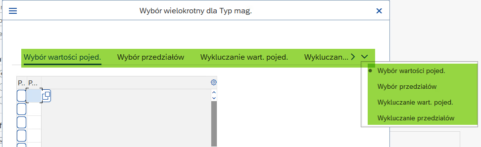 Rys. 14. Wykluczanie wartości pustych na ekranie wyboru w SAP.
