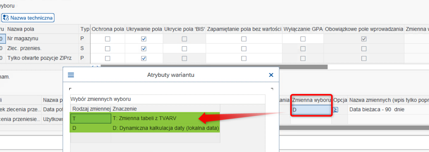 Rys. 16. Opracowywanie atrybutów wariantów – odczyt z tabeli TVARV.