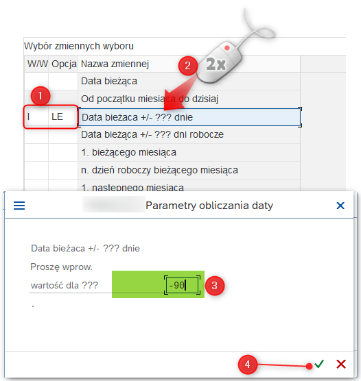Rys. 18. Wybór zmiennych dla dynamicznej kalkulacji daty.