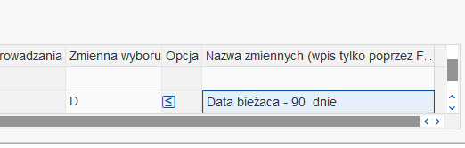 Rys. 22. Widok zdefiniowanych zmiennych dla dynamicznej kalkulacji daty.